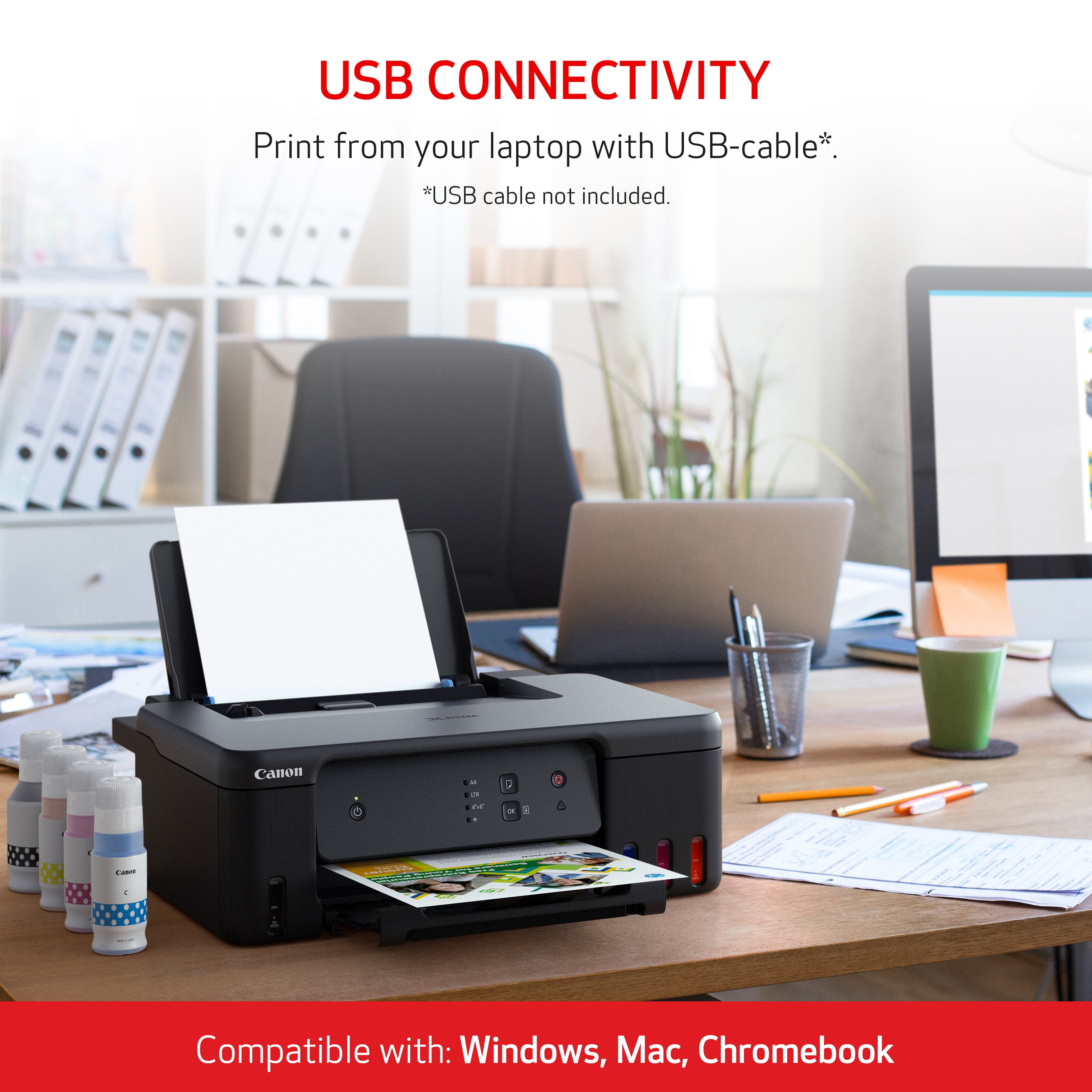 $163.39Designed for home and home offices, the Canon PIXMA G1230 MegaTank inkjet printer delivers high-quality, low-cost printing in a compact size. Get serious print productivity with a high page yield of up to 6,000 Black / 7,700 Color pages per full ink bottle set and a low cost per print – MegaTank means Mega Savings. The PIXMA G1230 comes with a full set of ink so you can print with confidence.The PIXMA G1230 is easy to set up and maintain and offers great media versatility to print on a variety of media types and sizes, including photo paper, envelopes, banners and more. Use Poster Artist Online to create professional-posters, banners and signage. Print both documents and photos on a variety of paper types using a hybrid ink system with pigment black for sharp black text and dye-based colors for vivid borderless2 photos up to 8.5â x 11â. Keep printing with a plain paper capacity of up to 100 sheets or 20 photo sheets (4âx6â). Easily connect and print through high-speed USB. This model is compatible with Windows, Mac and Chromebook. This model comes with a 1-year limited warranty and is backed by Canon’s Service and Support network.
