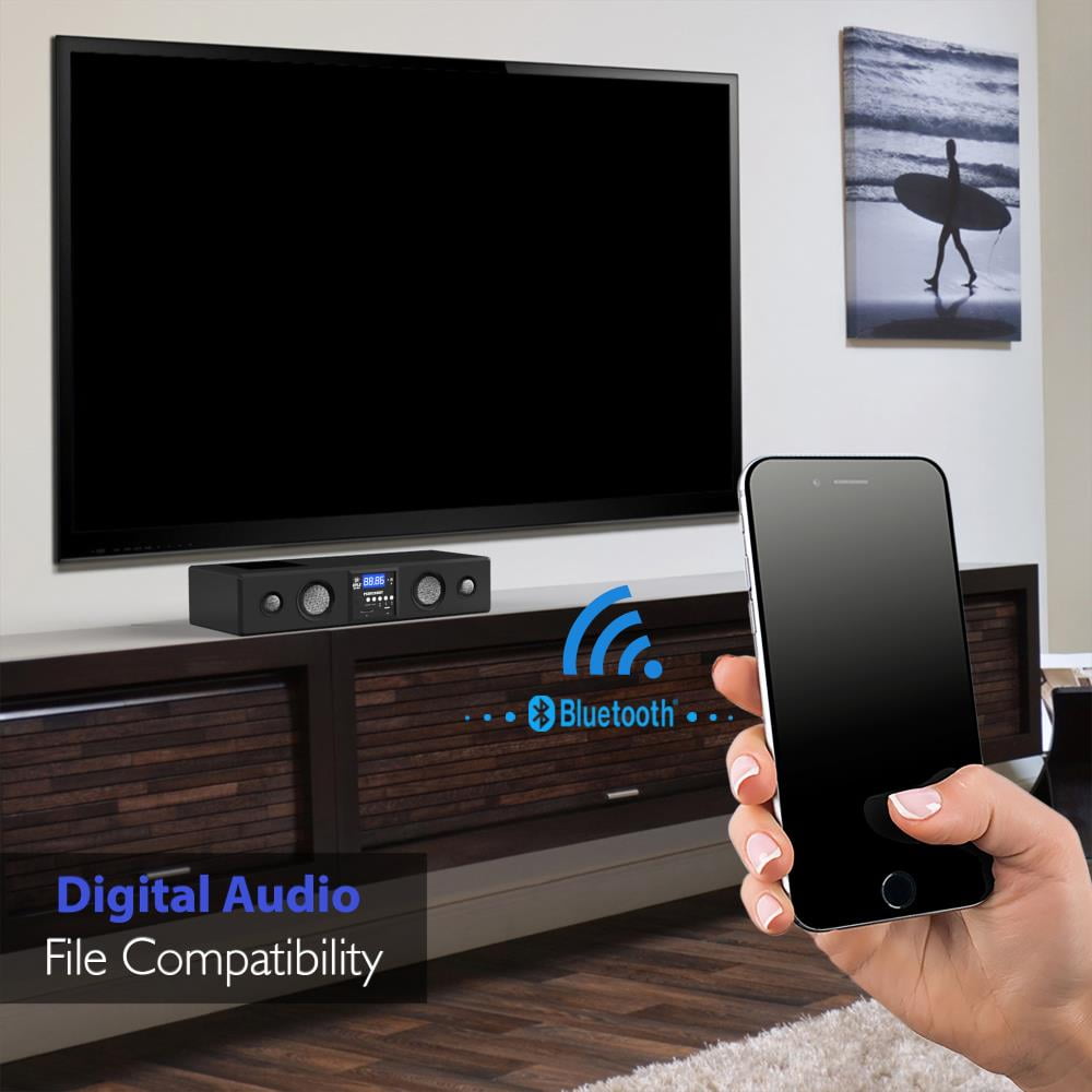 $180.59Original price was: $180.59.$155.87Current price is: $155.87.Pyle 2.1 Channel TV Soundbar Speaker – Wireless Bluetooth 500W 35” Sound bar Home Theater Stereo System w/Subwoofer, HDMI-ARC, Optical, USB, AUX, Remote Control – PSBV28HB – Built-in Class D Stereo Power Amplifier – (2) 2” Full-range Drivers – (2) 6.5” Subwoofer Drivers – Built-in BT Technology – 3.5mm Auxiliary Input – Optical Input – USB Input – HDMI ARC Input – Built-in LED lights Wireless Bluetooth Connectivity – Built-in BT for Wireless Music Streaming – Simple and Hassle-Free Pairing – Works with All of Today’s Latest Devices – (Smartphones, Tablets, Laptops, computers, etc.) – Wireless BT Version: 5.0 – Wireless BT Network Name: “PSBV28HB” – Wireless Range: 32.8′ ft. AA13