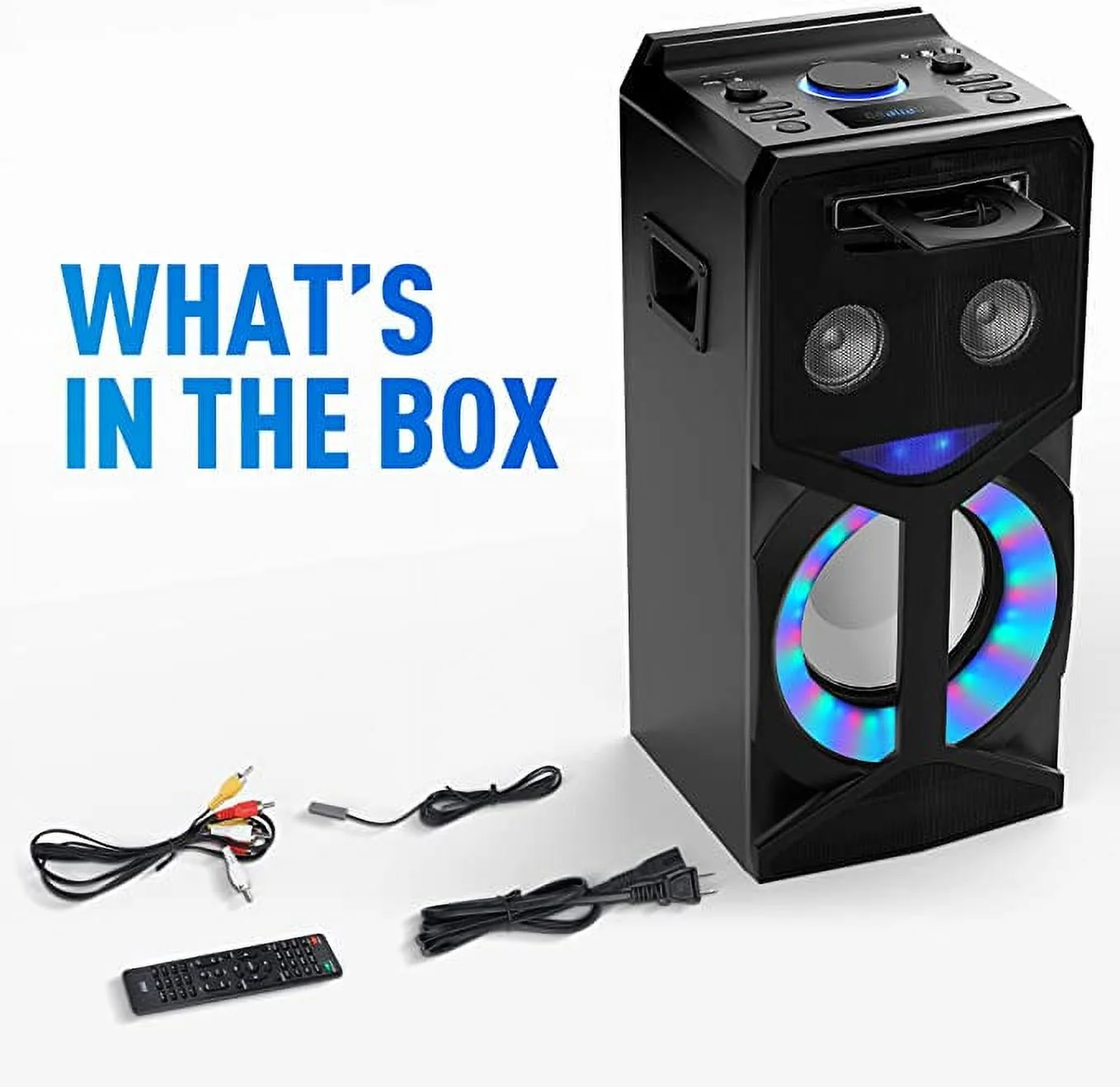 $110.93Pyle Karaoke Vibe PA Bluetooth Audio VIDEO/DVD Speaker System – 800W Multimedia CD/DVD Player for TV, Projectors, w/FM, USB, MIC, AUX, HDMI, RCA Inputs, Echo & LED Mode, w/Remote Control – PKRK270BT All-in-One Audio & Video Karaoke System – Compact & Portable Media Entertainment Unit – Built-in Bluetooth for Wireless Audio Streaming – Sound System: 8” Subwoofer – 3” Tweeter – LED Digital Display Screen – Built-in Fold-Out DVD Player – FM Radio – USB Flash Drive – Aux (3.5mm) Output – Audio Configuration: Volume, Bass, Treble, Echo Wireless Bluetooth Connectivity – Hassle-Free Pairing, Simple Music Streaming – Compatible with All of Today’s Latest Bluetooth Devices – (Smartphones, Tablets, Laptops, Computers, etc.) – Bluetooth Version: 5.0V – Bluetooth Network Name: ‘PKRK270BT’ – Wireless Bluetooth Range: Up to 30.0’ ft