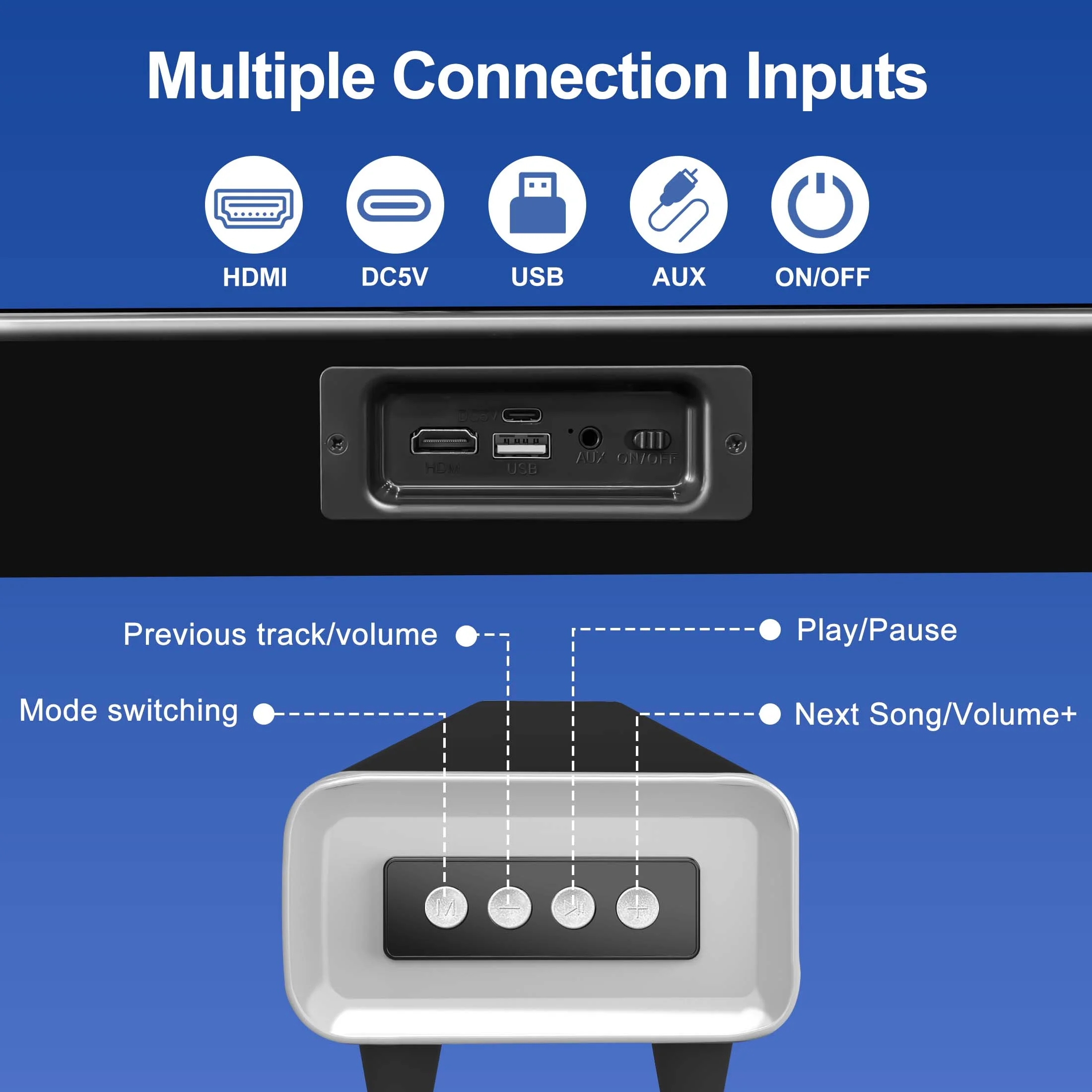 $120.39Original price was: $120.39.$51.59Current price is: $51.59.Boasting a formidable 100W output and an integrated subwoofer, this soundbar floods your space with immersive audio. With four full-range drivers and two dedicated subwoofer drivers, every sound is rendered with breathtaking clarity and depth, ensuring an unparalleled listening experience. Harnessing advanced DSP technology, it delivers precise sound positioning and lifelike vocals, while its unique top-firing subwoofer design fills the room with immersive 3D sound. Effortlessly control your audio with Bluetooth connectivity, intuitive button controls, or the included remote. With HDMI, USB, AUX, and Bluetooth inputs, seamless connectivity to a variety of devices is at your fingertips. Whether you’re watching movies or streaming music, the Seenda M-5031H sound bar delivers exceptional sound quality that redefines your entertainment experience.