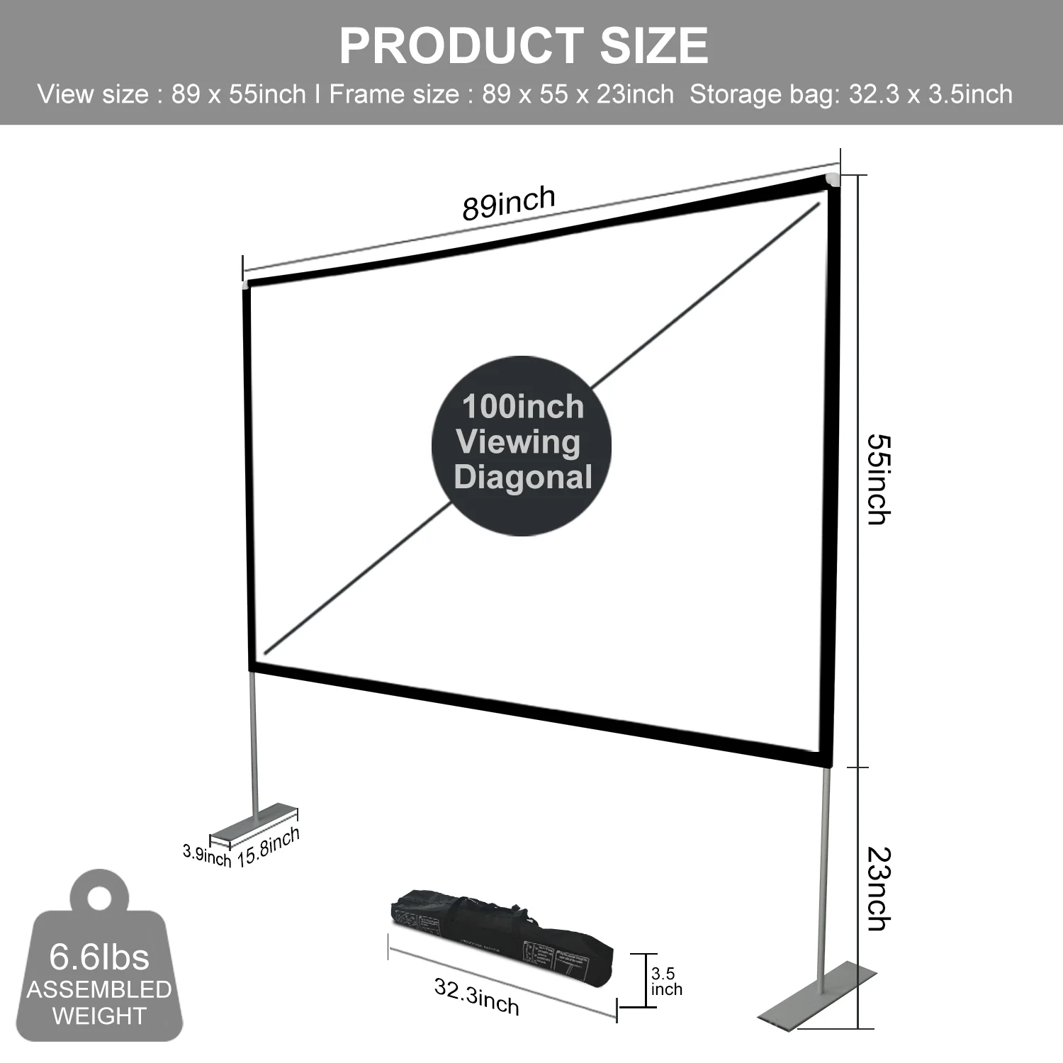 SKERELL Deal for 100 inch Portable Projector Screen with Stand,4K 16:9 Outdoor Movie Screen with Carry Bag