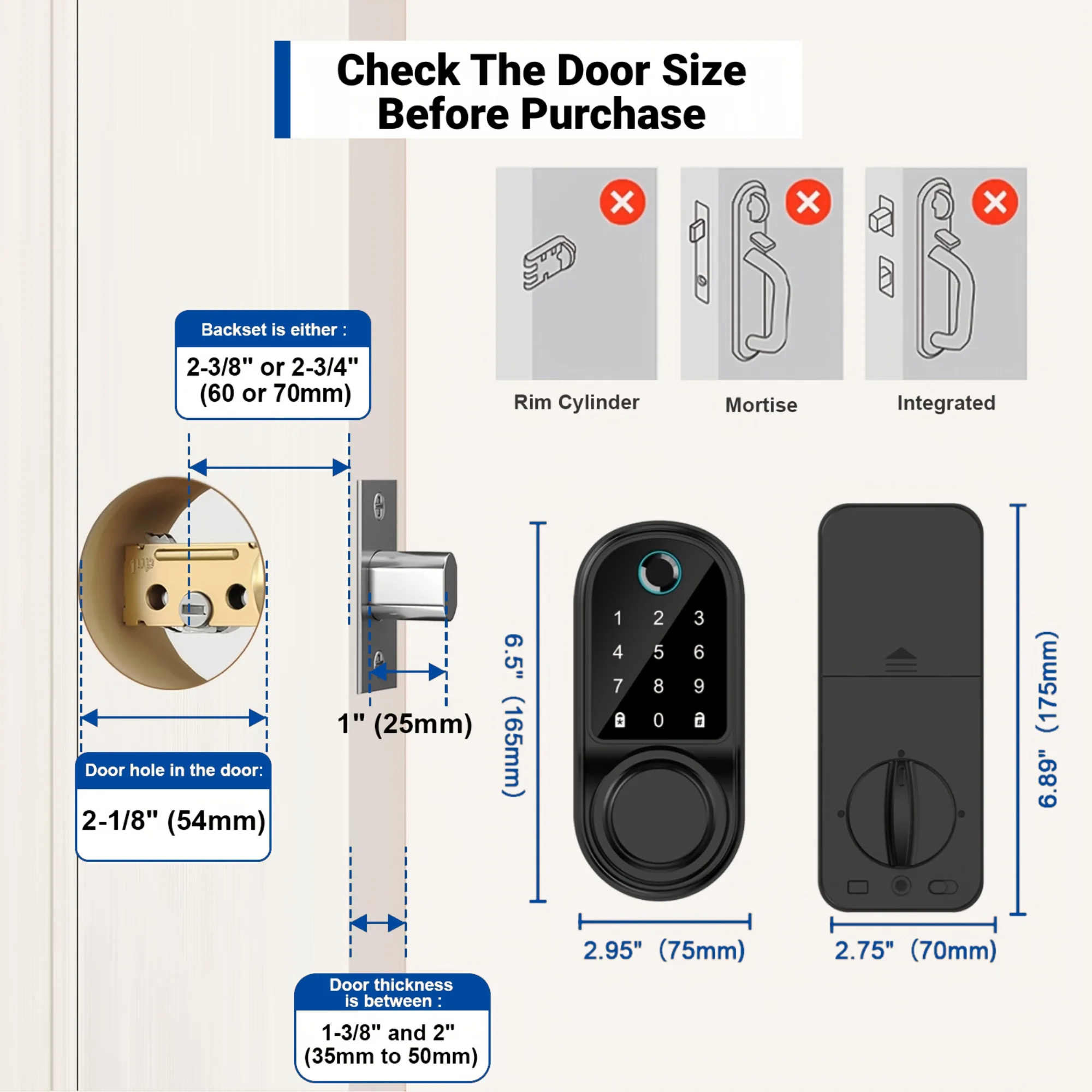 Smart Door Lock,Blacksmith Biometric Keyless Electronic Door Lock With APP Control,Fingerprint Smart Lock Deadbolt for Home,Apartment,Office and Garages,Black