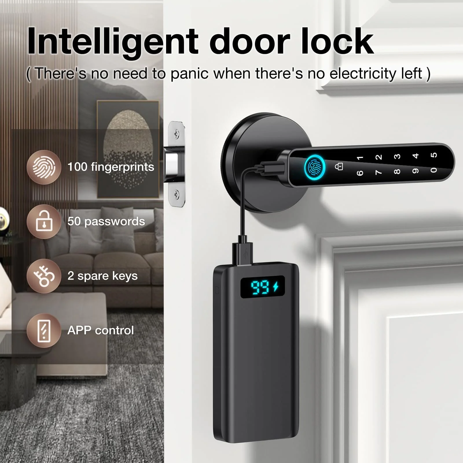 Smart Door Lock, Fingerprint Door Lock Knob with App Control, Suitable for Home, Cloakroom, Offices, Hotels (K10)