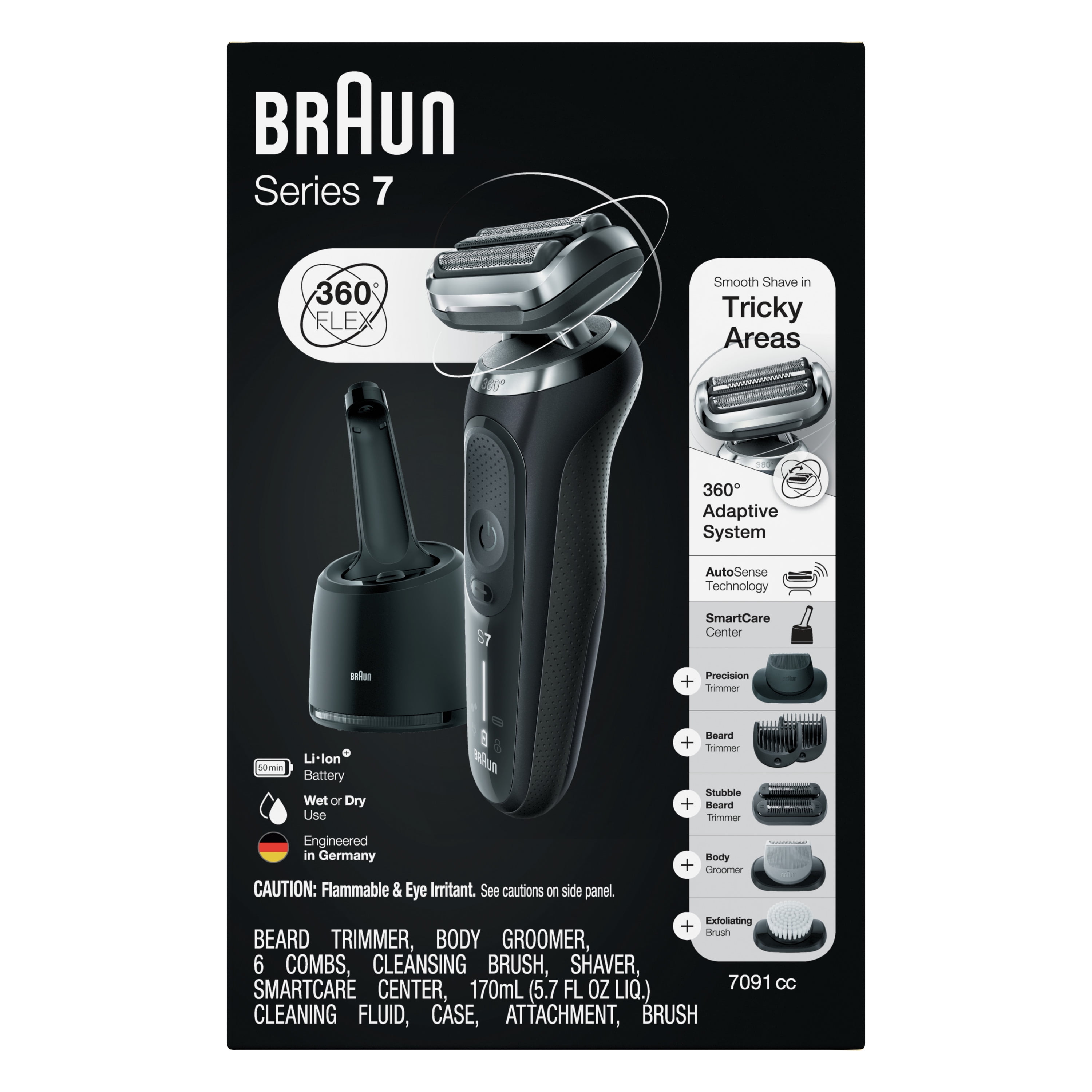 Braun Series 7 7091cc Flex Electric Shaver with AutoSense, 360° Adaptation, Black