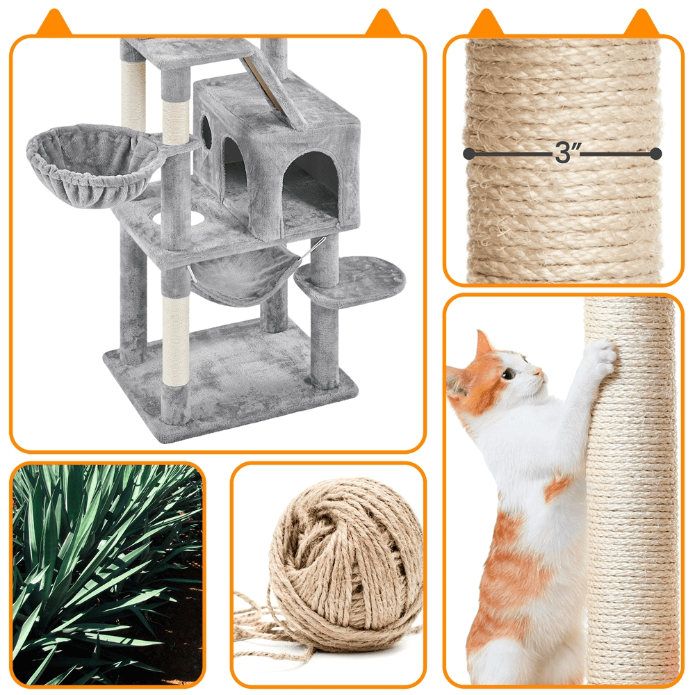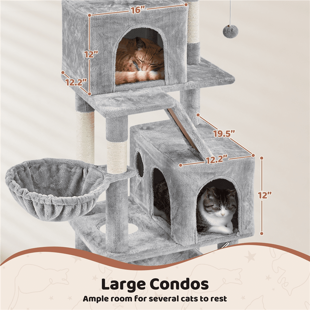 Alden Design 72″ H Multi-Level Large Cat Tree with 2 Cozy Perches for Medium Cats, Light Gray