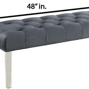Best Master Suede Fabric Upholstered Tufted Bench in Gray/Acrylic Legs