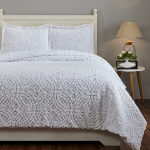Better Trends Wedding Ring Comforter Set Collection 100% Cotton Tufted Unique Luxurious Soft Plush Chenille Machine Washable Tumble Dry, Twin, White