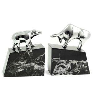 Bey-Berk Marble Fancy Beveled Medical Caduceus Book Ends 7.25″H Antique Silver/Black (R19M)