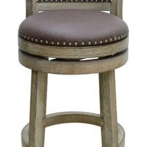 Boraam Cantabria 29″ Swivel Faux Leather and Wood Bar Stool – Weathered-White Wire-Brush Finish