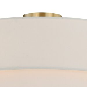 Burnaby 20.5-in W Brass Mid-Century Modern Drum Semi Flush Mount Ceiling Light White Linen