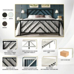 Castle Place Modern Geometric Slat Twin Size Metal Platform Bed, Brown