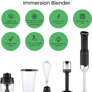 Chefman Cordless 5-in-1 Immersion Blender Set, Ice Crushing, Masher, Whisk, Chopper, Stainless Steel