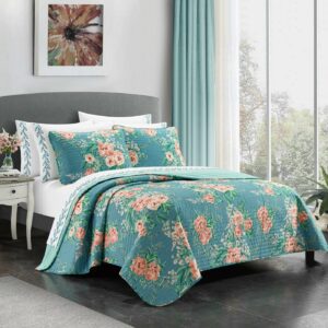 Chic Home Carli 9-Piece Floral Quilt Set, California King, Aqua/Coral