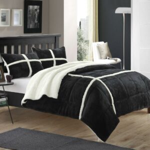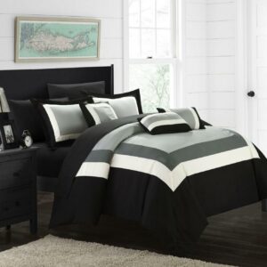 Chic Home Darren 10-Piece Color Block Bed in a Bag Comforter Set, Queen, Black