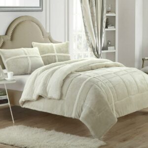 Chic Home Edney 10-Piece Reversible Pintuck Geometric Comforter Set, Queen, Beige