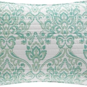 Chic Home CS3334-AN 3 Piece Ora Heavy Embossed and Embroidered Quilted Geometrical Pattern Reversible Printed King Comforter Set Aqua