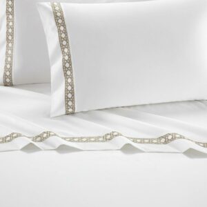 Chic Home Daria 4-Piece Embroidered Cotton Sheet Set, King, Taupe