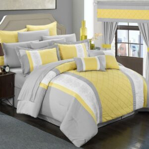 Chic Home Dylania 24-Piece Embroidered Comforter Set, King, Yellow