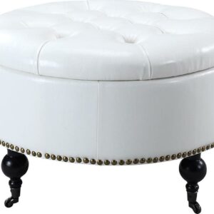Chic Home Keller Round Ottoman Hidden Storage Upholstered PU Leather
