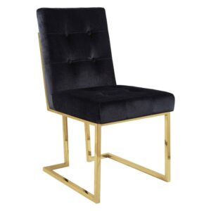 Chic Home Liam Modern Contemporary Tufted Velvet Polished Brass Metal Frame Dining Side Chair, Navy