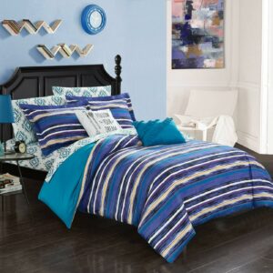 Chic Home Marisol 7-Piece Reversible Geometric Comforter Set, Twin, Blue