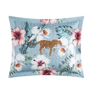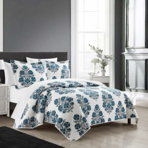Chic Home Morten 7-PieceLarge Scale Floral Medallion Print Quilt Set, King, Blue