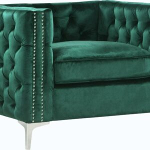 Chic Home Monet Velvet Modern Contemporary Button Tufted with Silver Nailhead Trim Silvertone Metal Y-leg Club Chair, Green