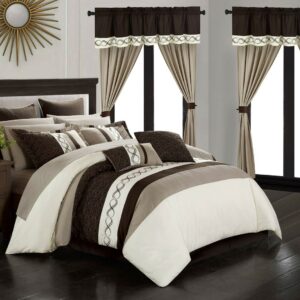 Chic Home Rinat Color Block Embroidered Bedding Set, 24-Piece, Beige, King