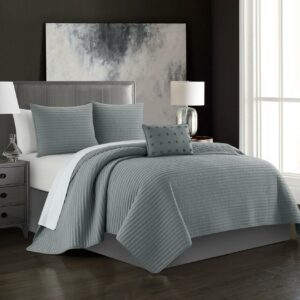 Chic Home Rylan 4 Piece Striped Box-stitched With Dotted Pillow Quilt Set, King, Gray