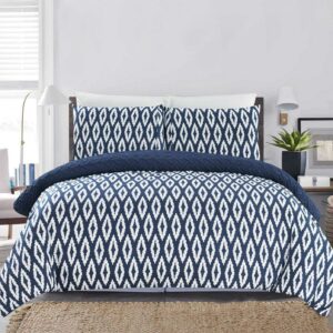 Chic Home Sabina 7-Piece Reversible Geometric Comforter Set, Queen, Navy