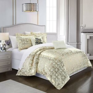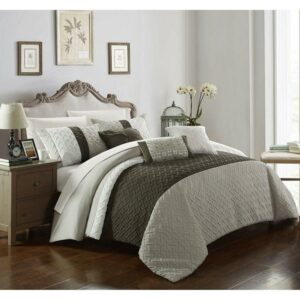 Chic Home Shea 9-Piece Metallic Lattice Pattern Bed in a Bag Comforter Set, Queen, Grey