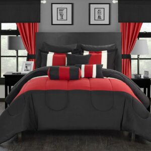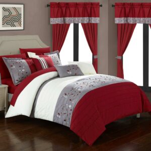 Chic Home Whitehall 20-Piece Color Block Comforter Set, Queen, Red