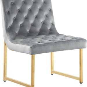 Chic Home Tatiana Accent Chair Sleek Elegant Tufted Velvet Upholstery Plush Cushion Brass Finished Polished Metal Frame, Contemporary Modern, Grey