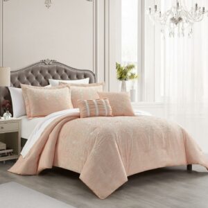 Chic Home Yasmine 5-Piece Embroidered Heathered Comforter Set, King, Blush