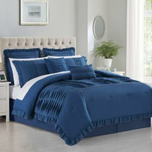 Chic Home Yvie 12-Piece Ruffled Pleated Comforter Set, King, Blue