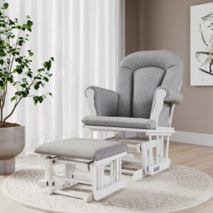 Child Craft Cozy Glider Rocker with Ottoman, Smooth Motion, Matte White Frame, Light Gray Cushion
