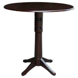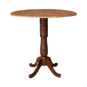 42″ Round Solid Wood Dual Drop Leaf Pedestal Table in Cinnamon/Espresso – 41.5″H Bar Height by International Concepts