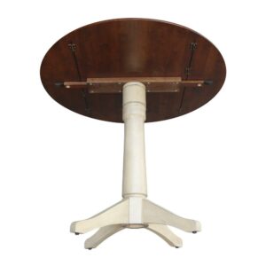 42″ Round Dual Drop Leaf Pedestal Table – 42.3″H Almond Espresso Finish