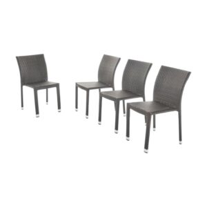 Christopher Knight Home Dover Outdoor Wicker Aluminum Armless Stacking Dining Chair (Set of 4) by Brown
