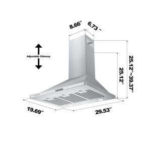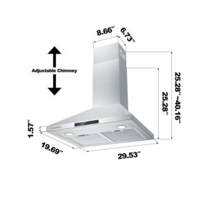 CIARRA Range Hood 30 inch Wall Mount Chimney Hood Range 450 CFM Ducted and Ductless CAS30275