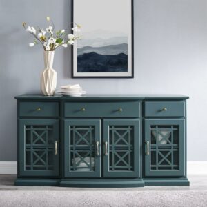Classic Tiered-Front Glass Door Dark Teal Fretwork Sideboard by Walker Edison