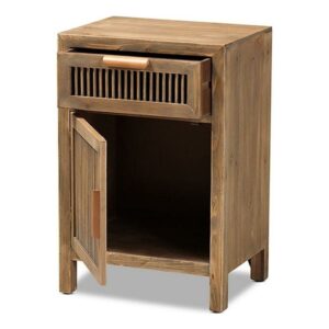 Clement Rustic Transitional Medium Oak Finished 1-Door and 1-Drawer Wood Spindle Nightstand