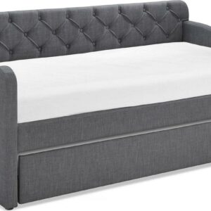 ClickDecor Carmina Upholstered Twin Size Daybed with Roll Out Trundle, Dark Gray