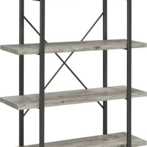 Cole 4-Shelf Bookcase Grey Driftwood and Gunmetal
