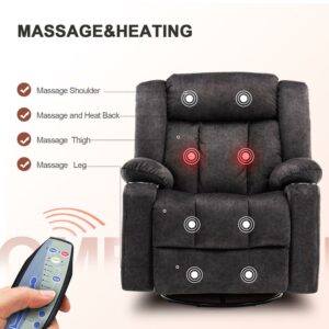 Comhoma Massage Recliner Chair 37.48″ Wide 360° Swiveling Sofa Heated Massage Rocker, Gray