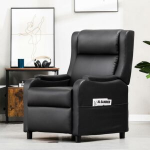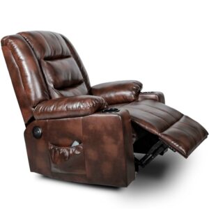 COMHOMA Swivel Rocker Recliner Chair,, 35.8″ Wide PU Leather Rocking Sofa with Heated Massage, Brown