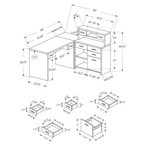 Computer Desk – L-Shaped / Corner / Hutch / 8 Drawers / 3 Cubbies / Reversible – 63″L X 59″W – Dark Taupe Wood-Look