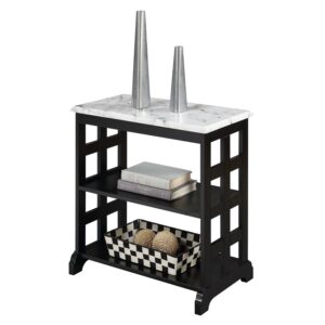 Convenience Concepts American Heritage Baldwin Chairside Table with Shelves, White Faux Marble/Black