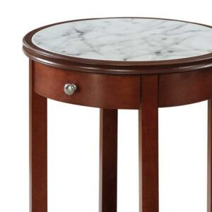 Convenience Concepts American Heritage Baldwin 1 Drawer End Table with Shelf , White Faux Marble Top & Black Frame