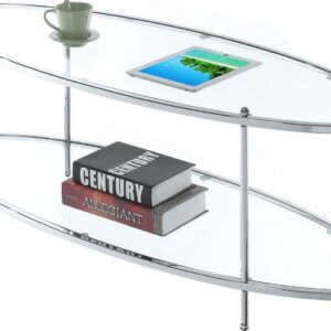 Convenience Concepts Royal Crest 2 Tier Oval Glass Coffee Table, Glass/Chrome